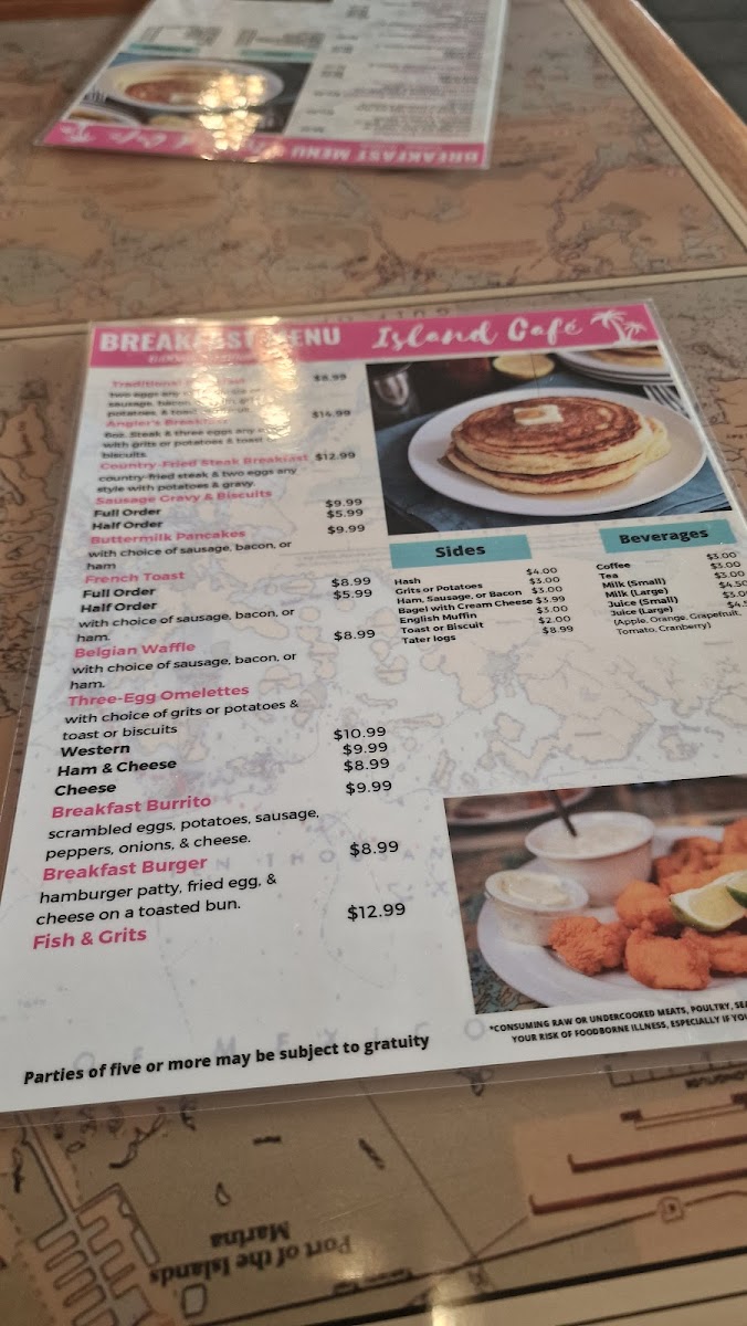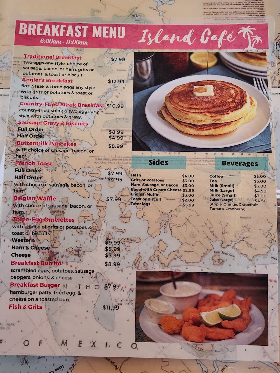 Island Cafe offers a straightforward and inviting menu that captures the casual spirit of a classic diner and breakfast spot with a coastal twist. Whether you're stopping by for a morning meal or a relaxed lunch, the menu features familiar comfort foods alongside distinctive local flavors.