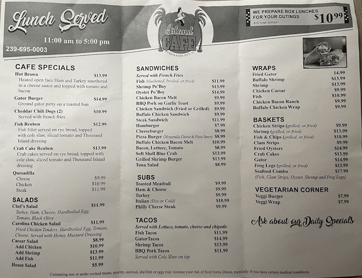 Island Cafe Menu